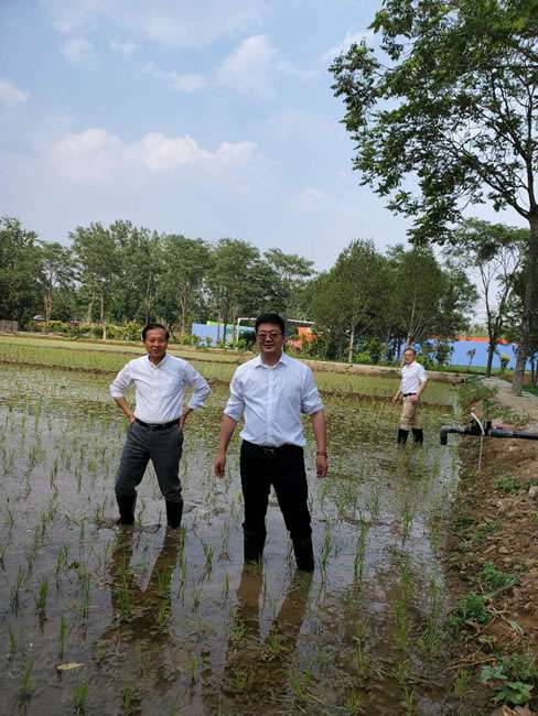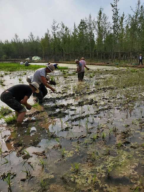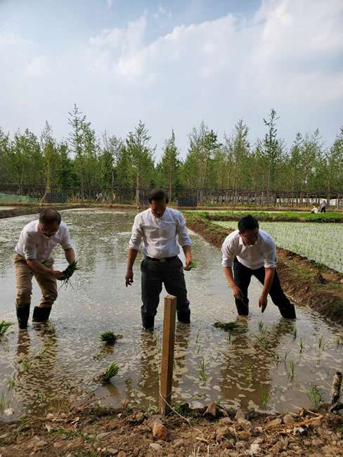 日前,南昌昊然进口食品销售有限公司董事长梁雨、总裁谢俊率集团高级管理人员来到位于北京西四环外的锦绣大地生态园,在景色迷人的玉泉山山下,同志们挽起裤脚跃进田里,生态园农业技术员一边弓腰示范,一边讲解道“插秧是个技术活,将秧苗窝在虎口处,既要轻又要稳,用巧劲儿将秧苗抛在泥里,不能抛得太深,又要确保植保灌溉时,秧苗不漂浮在水面上。”